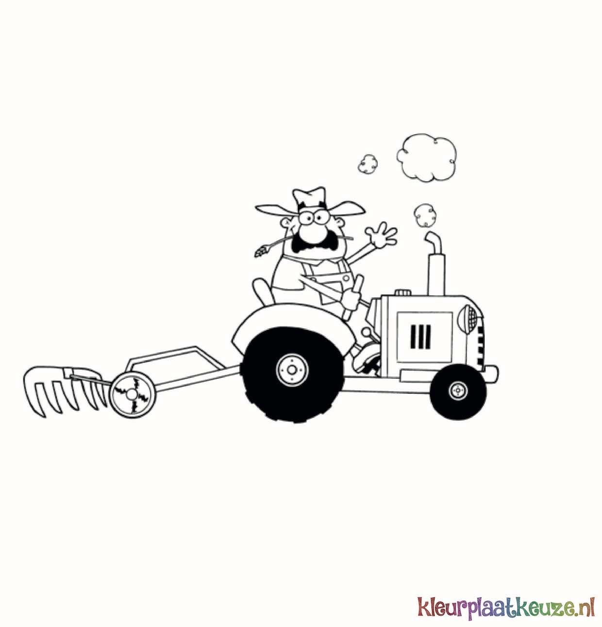 Kleurplaat vrolijke boer op tractor cartoon